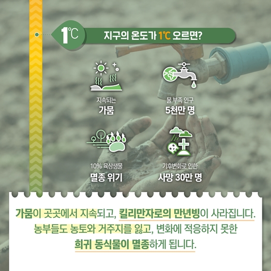 그렇다면, 지구의 온도가 1℃ 오를 때마다 세상은 어떻게 변할까요?