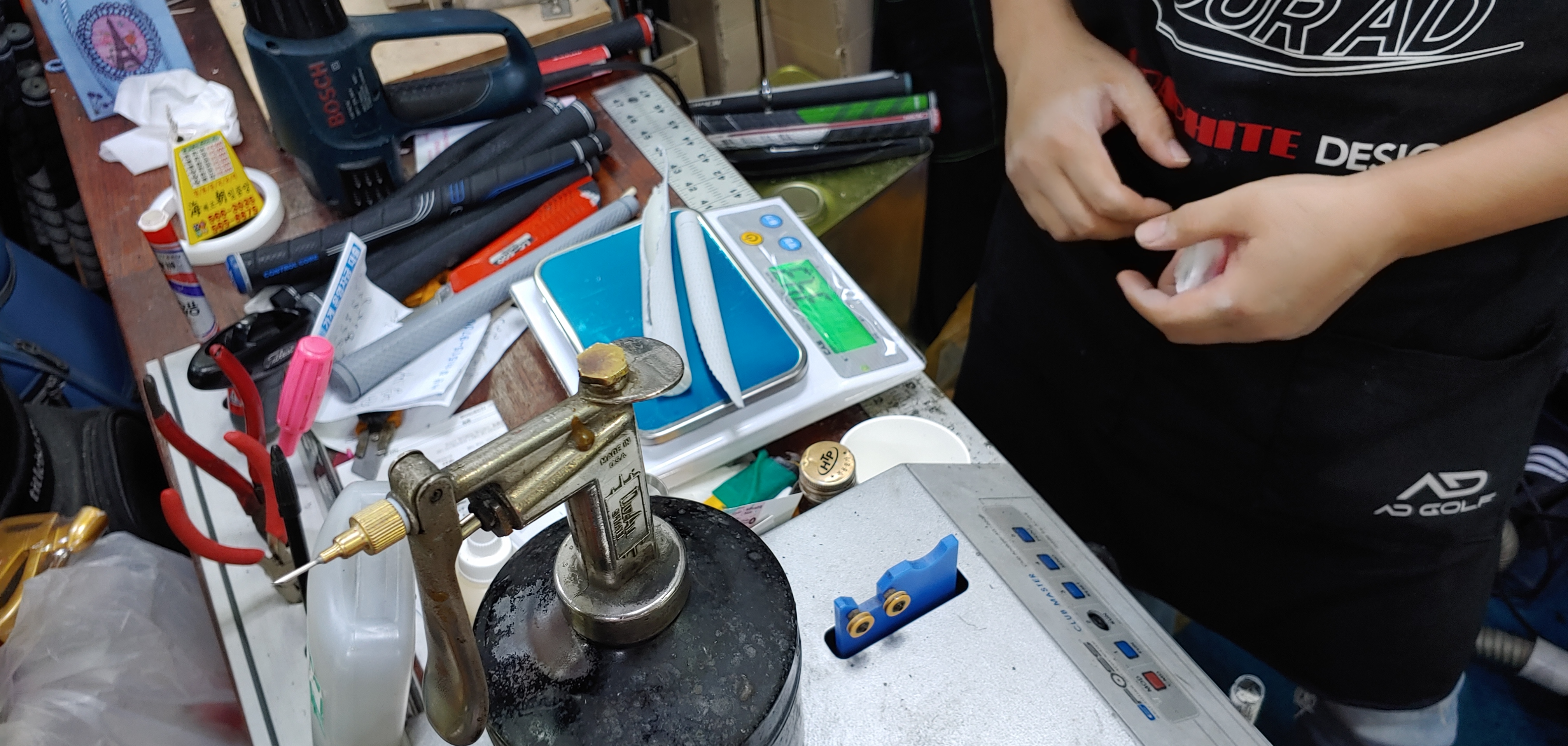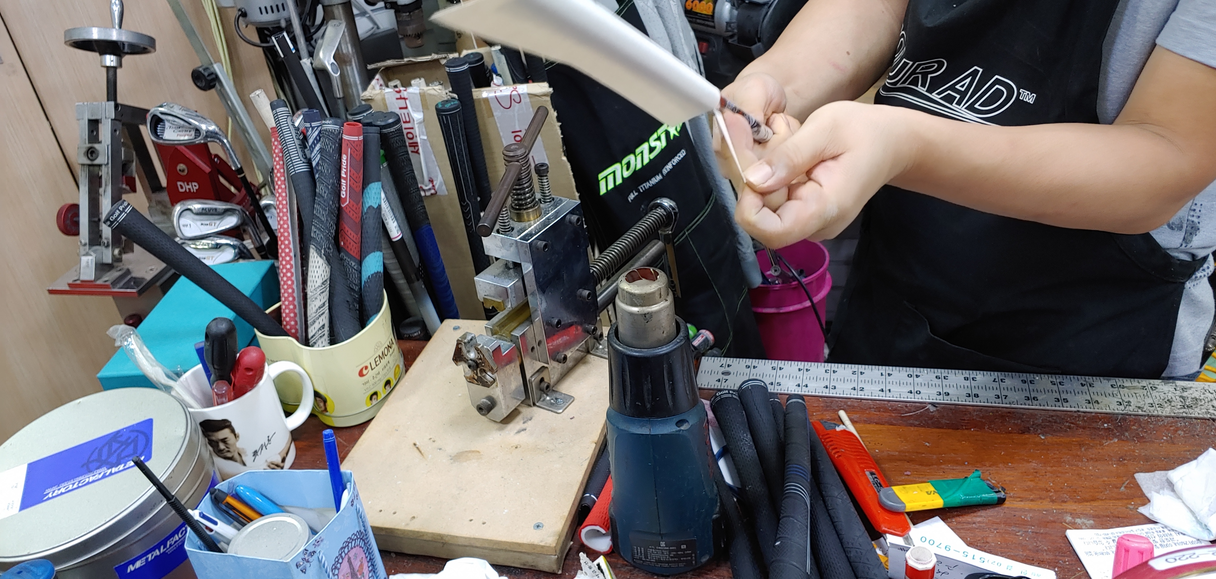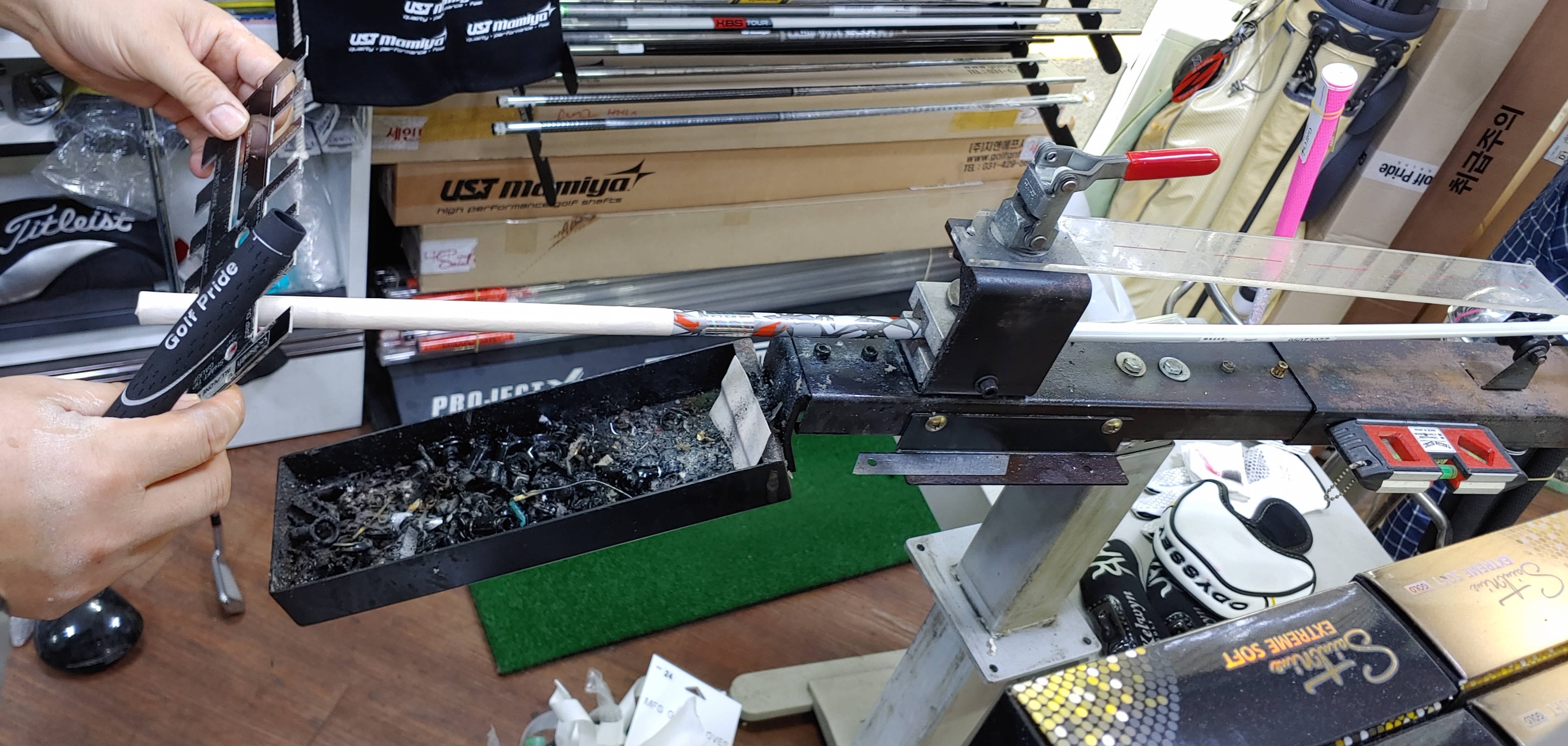 그립과 샤프트에 사이에 있는 잔여 막(?) 같은 것을 벗겨주고 계십니다.