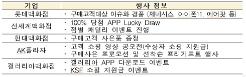 백화점은 롯데, 현대, 신세계, 갤러리아, AK플라자 등 주요 업체가 참여해 경품 이벤트 및 사은품 증정행사를 진행한다.
