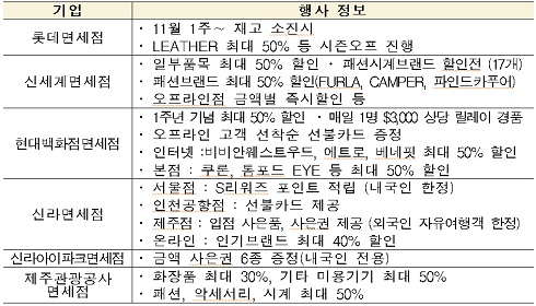롯데, 신세계, 현대 등 각 면세점도 외래 방문객을 위한 다양한 프로모션과 특별이벤트를 준비했다. 일부품목에 한해 최대 50%의 할인 혜택을 제공한다.