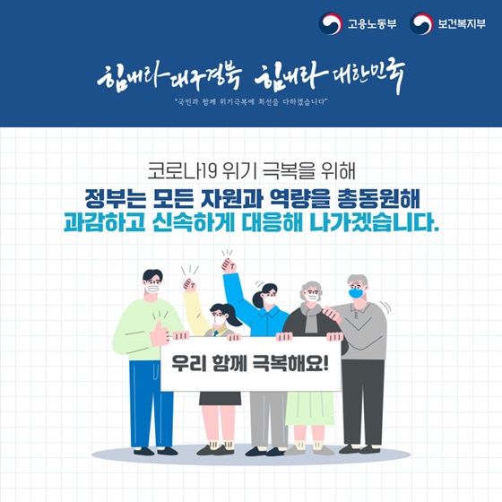 코로나19 위기 극복을 위해 모든 자원과 역량을 총동원, 과감하고 신속하게 대응해나가겠습니다.