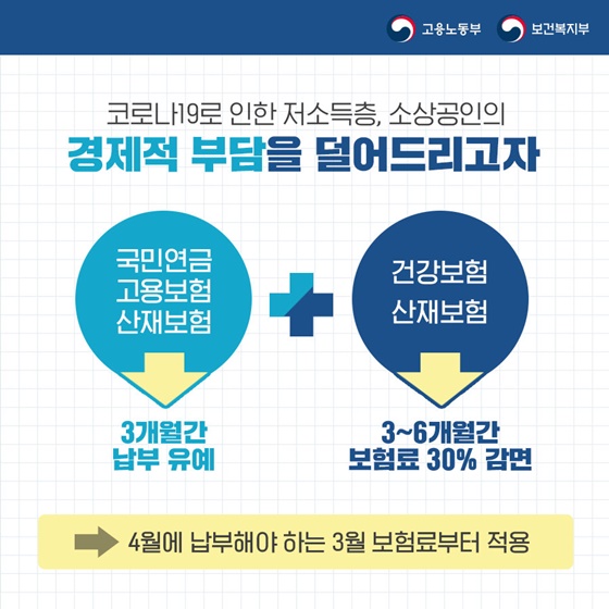 저소득층, 소상공인의 4대 보험료 부담을 덜어드립니다!