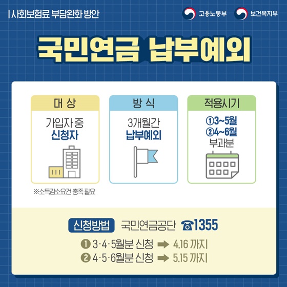 - 방식 : 3개월간 납부 예외