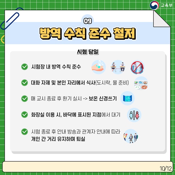 · 시험장 내 방역 수칙 준수