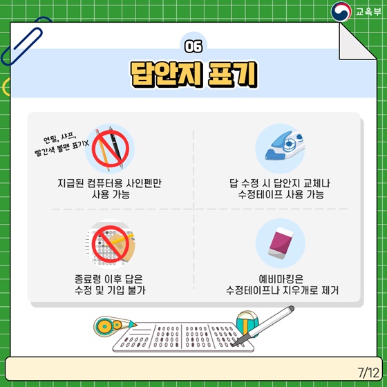 · 답 수정 시 답안지 교체나 수정테이프 사용 가능