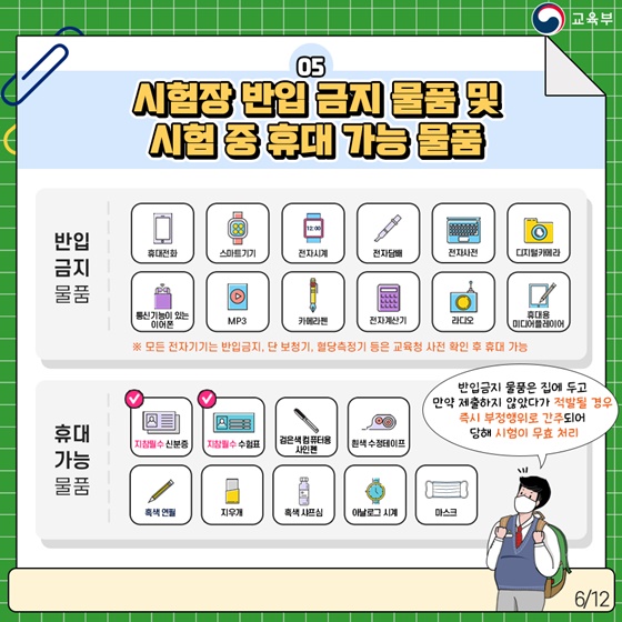 5. 시험장 반입 금지 물품 및 시험 중 휴대 가능 물품