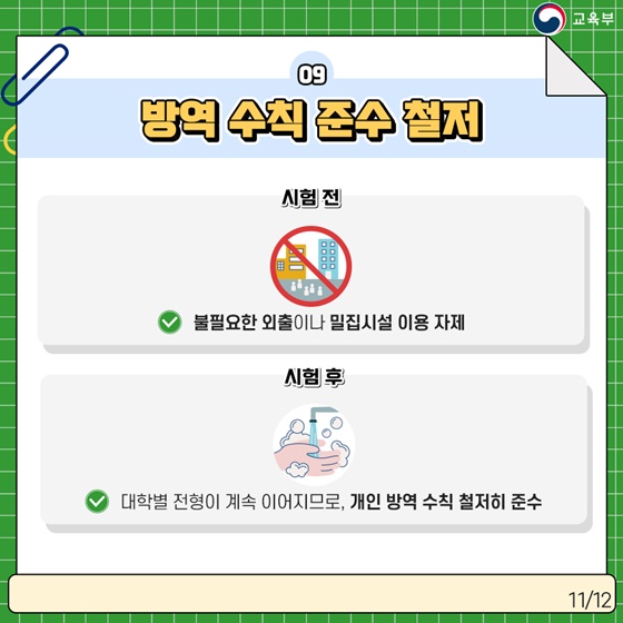 · 대학별 전형이 계속 이어지므로, 개인 방역 수칙 철저히 준수