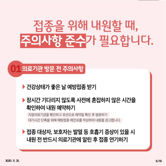 - 건강상태가 좋은 날 예방접종 받기