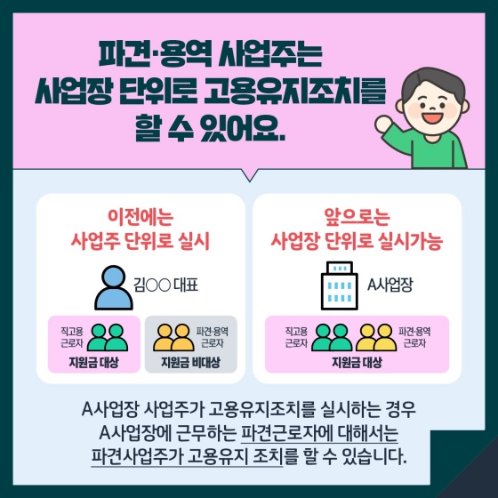 • 파견·용역 사업주는 사업장 단위로 고용유지조치를 할 수 있어요