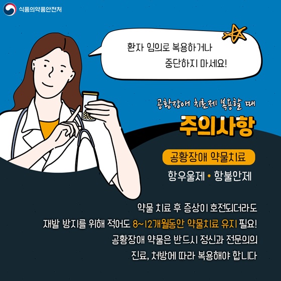 공황장애 약물은 반드시 정신과 전문의의 진료, 처방에 따라 복용해야 합니다.