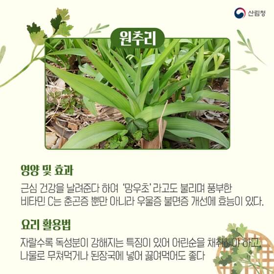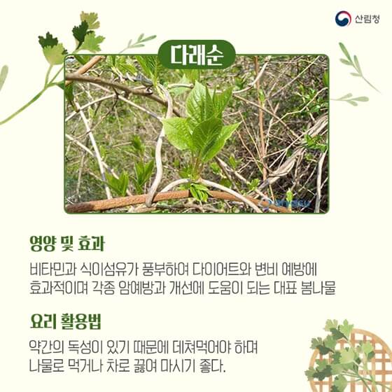 산림청에서 알려주는 봄나물 정보 함께 보아요.