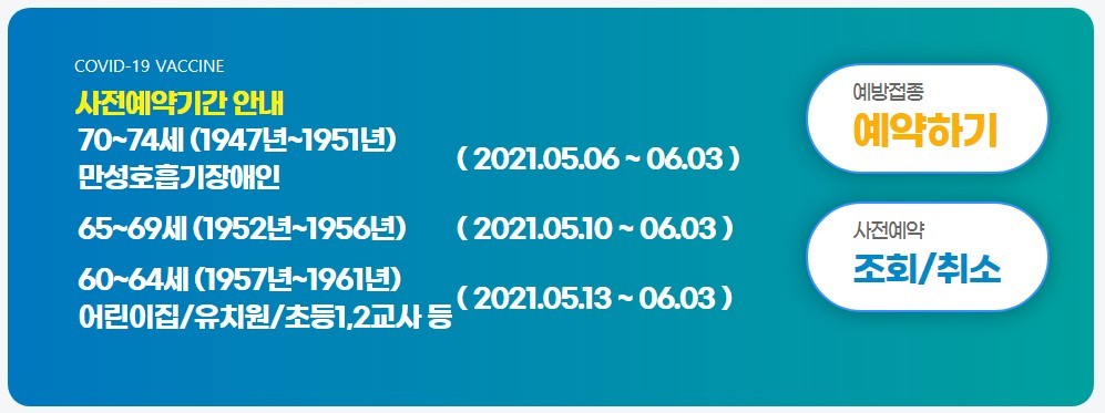 | 70∼74세 (1947∼1951년생) | 5. 6. ∼ 6.3. | 5.27. ∼ 6.19. |