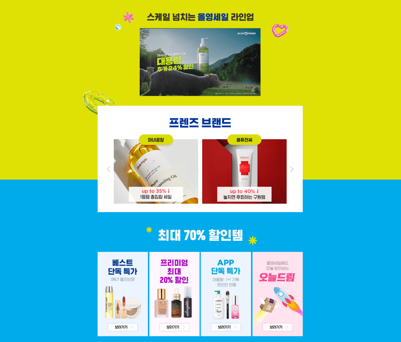 올리브영의 올영세일에 각종 화장품 브랜드가 할인이벤트에 참여해