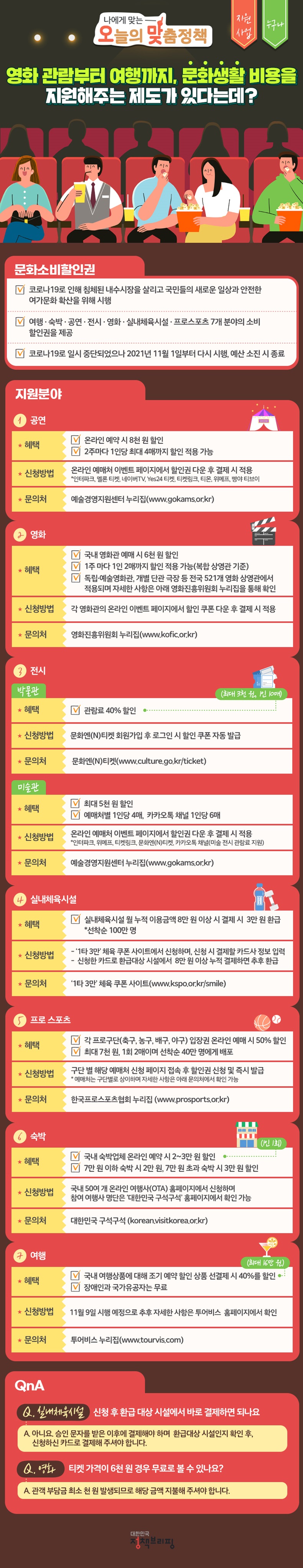 - 여행·숙박·공연·전시·영화·실내체육시설·프로스포츠 7개 분야의 소비 할인권을 제공