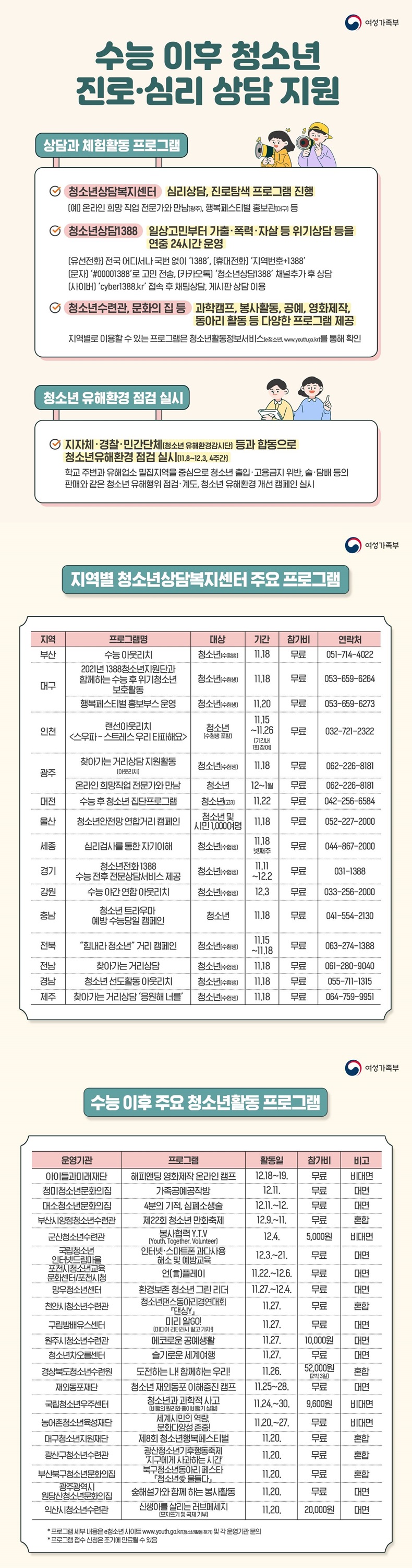 ◆ 수능 이후 청소년 진로·심리 상담 지원