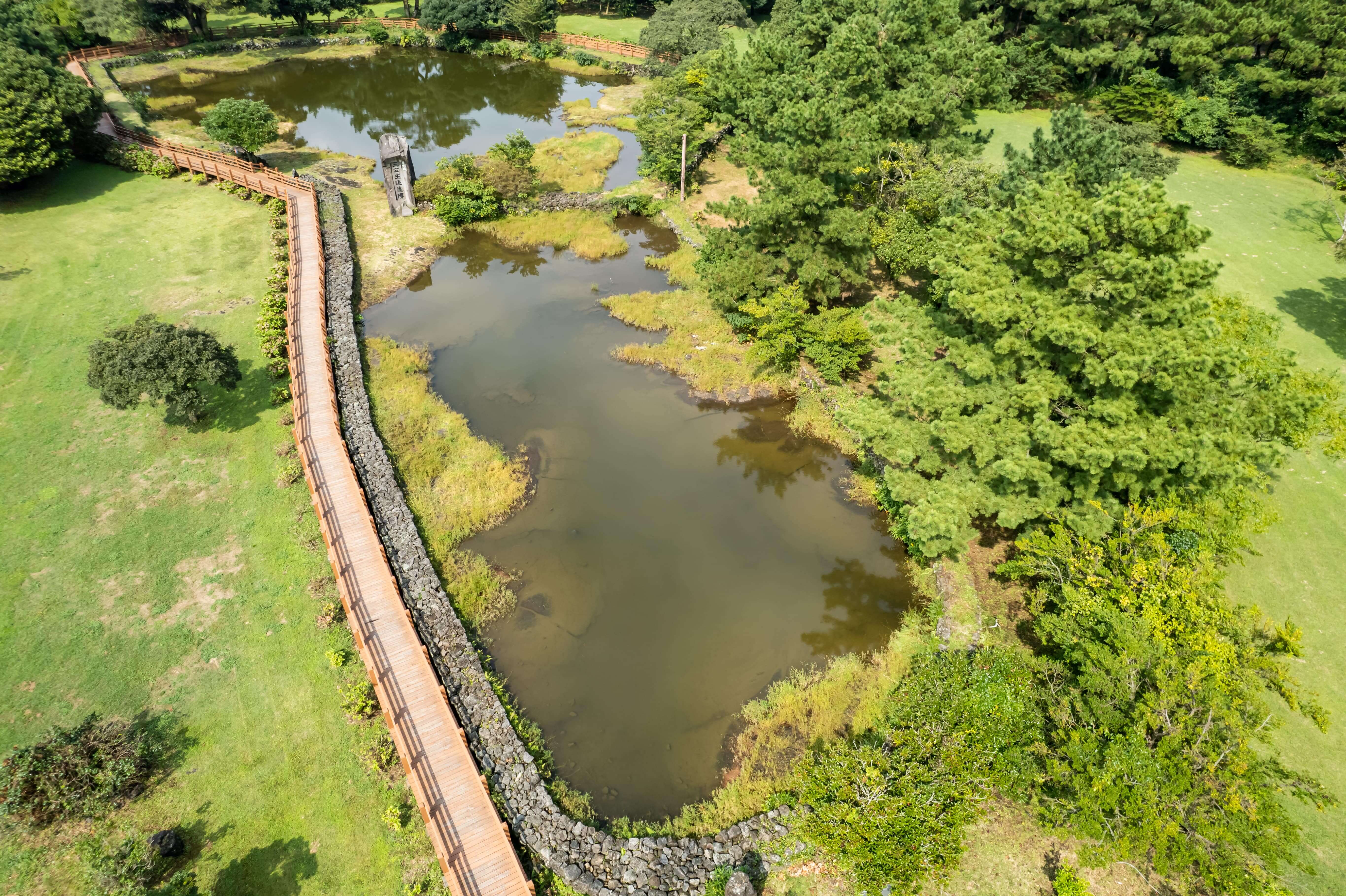 혼인지는 탐라국의 시조 고씨 양씨 부씨 세 신인이 벽랑국 삼공주를 배필로 맞아 혼인했다는 전설이 내려오는 연못입니다. 삼성혈과 마찬가지로 신화속 장소라고 보시면 됩니다. 실제로 이 연못 주변으로는 신방굴이라는 동굴이 있어서 신비로운 느낌을 더해줍니다.