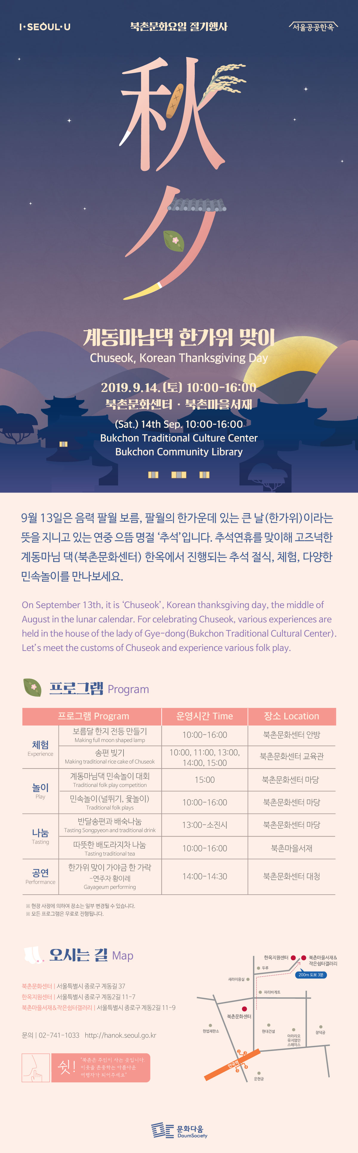추석을 맞이해 북촌문화센터에서 한가위 맞이 행사를 진행합니다.