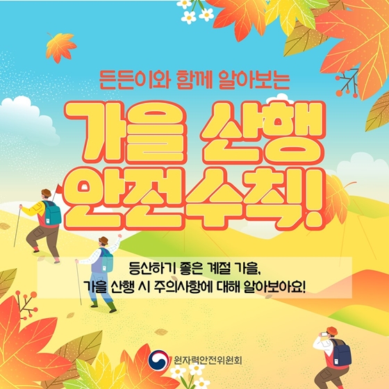 꼼꼼하게 알아두어 안전하고 즐거운 가을 산행 떠나시길 바랍니다.