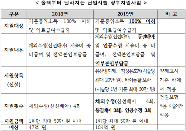 난임시술 지원대상은 기준중위소득 130% 이하에서 180% 이하로 확대된다.
