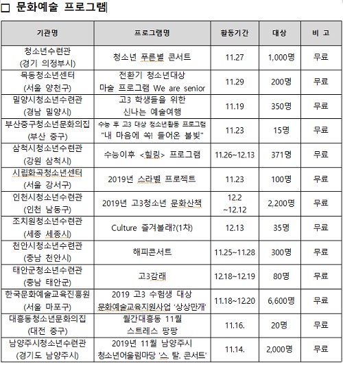 문의 : 여성가족부 청소년가족정책실 청소년활동진흥과(02-2100-6249), 청소년자립지원과(02-2100-6280)