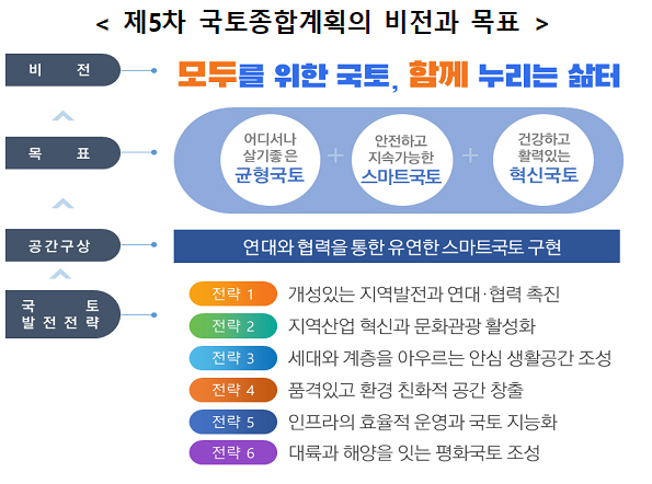 이번 계획은 ▲균형국토 ▲스마트국토 ▲혁신국토를 3대 목표로 정하고 이를 실현하기 위한 6가지 발전 전략을 제시하고 있다.