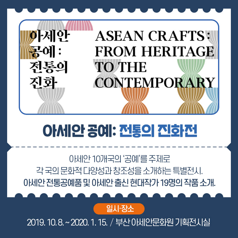 아세안 10개국의 '공예'를 주제로 각국의 문화적 다양성과 창조성을 소개하는 특별전시. 아세안 전통공예품 및 아세안 출신 현대작가 19명의 작품 소개.