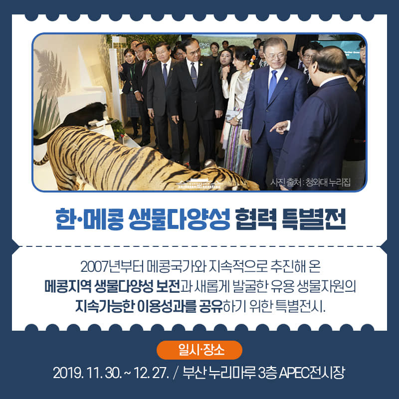 2007년부터 메콩국가와 지속적으로 추진해온 메콩지역 생물다양성 보전과 새롭게 발굴한 유용생물자원의 지속가능한 이용성과를 공유하기 위한 특별전시.