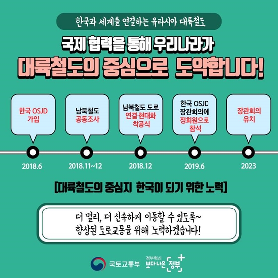 ◆ 국제 협력을 통해 우리나라가 대륙철도의 중심으로 도약합니다.