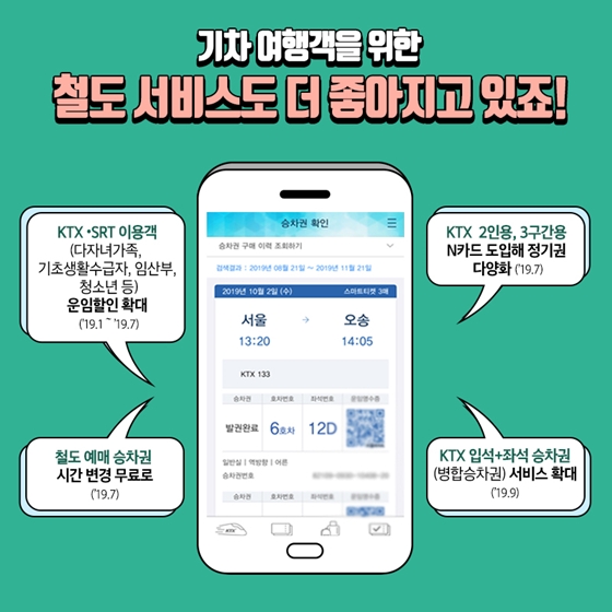 - KTX입석+좌석 승차권(병합승차권) 서비스 확대