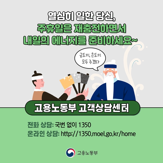 열심히 일한 당신, 주휴일을 재충전하면서 내일의 에너지를 준비하세요~
