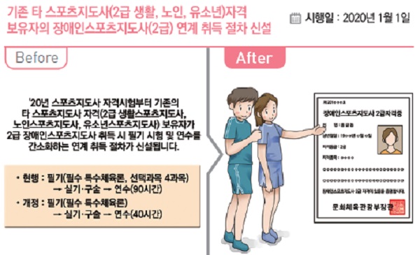 또한 기존 타 스포츠지도사 자격 보유자의 장애인스포츠지도사 연계 취득 절차가 신설된다.