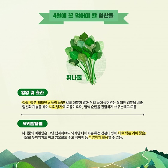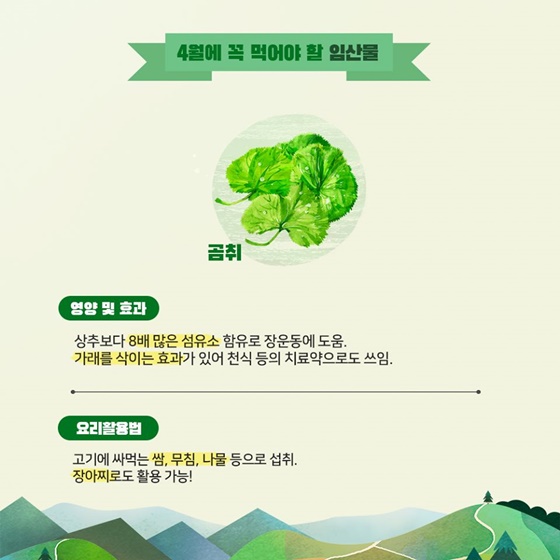 4월에 꼭 먹어야 할 임산물 5가지를 소개합니다.