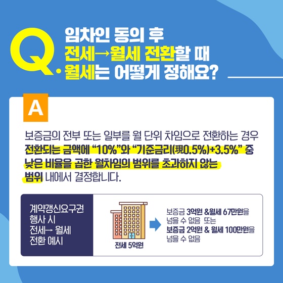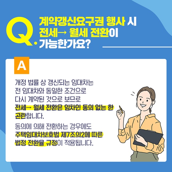 Q. 계약갱신요구권 행사 시 전세→ 월세 전환이 가능한가요?