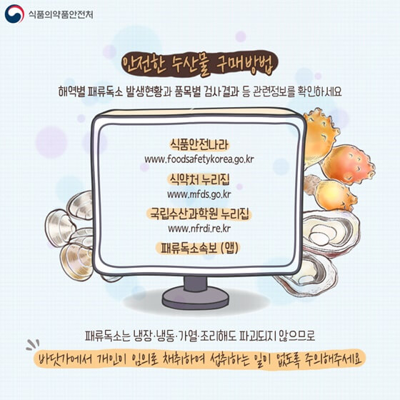 안전한 수산물 구매를 위해 해역별 패류독소 발생현황과 품목별 검사 결과 등 관련 정보를 확인하세요!