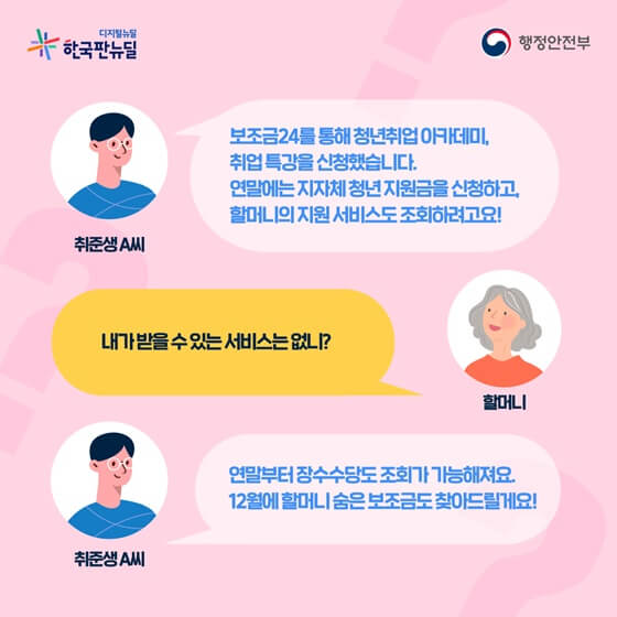 취준생A씨_“연말부터 장수수당도 조회가 가능해져요. 12월에 할머니 숨은 보조금도 찾아드릴게요!”