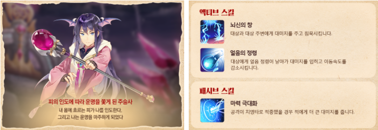 마력이 담긴 설치형 소환을 사용하여 대상에게 지속적인 마법 데미지를 가하는 등 다양한 전투를 이끄는 매력적인 캐릭터입니다.