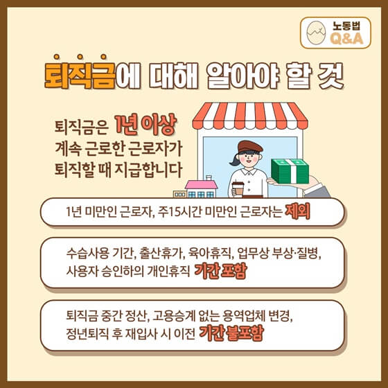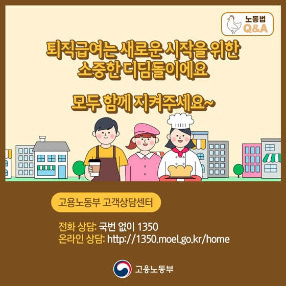 퇴직급여는 새로운 시작을 위한 소중한 디딤돌이에요. 모두 함께 지켜주세요~