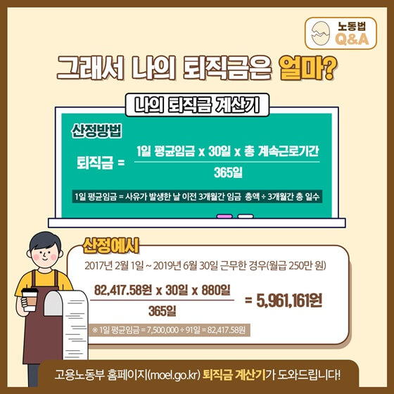 고용노동부 홈페이지(moel.go.kr) 퇴직금 계산기가 도와드립니다!