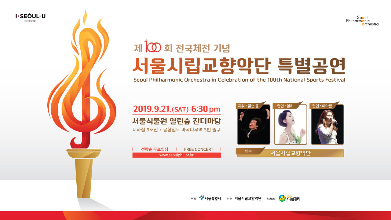 서울시와 서울시립교향악단은 오는 10월 서울에서 개최되는 제100회 전국체전을 기념하고자 서울식물원에서 『전국체전 기념 음악회』를 개최합니다.