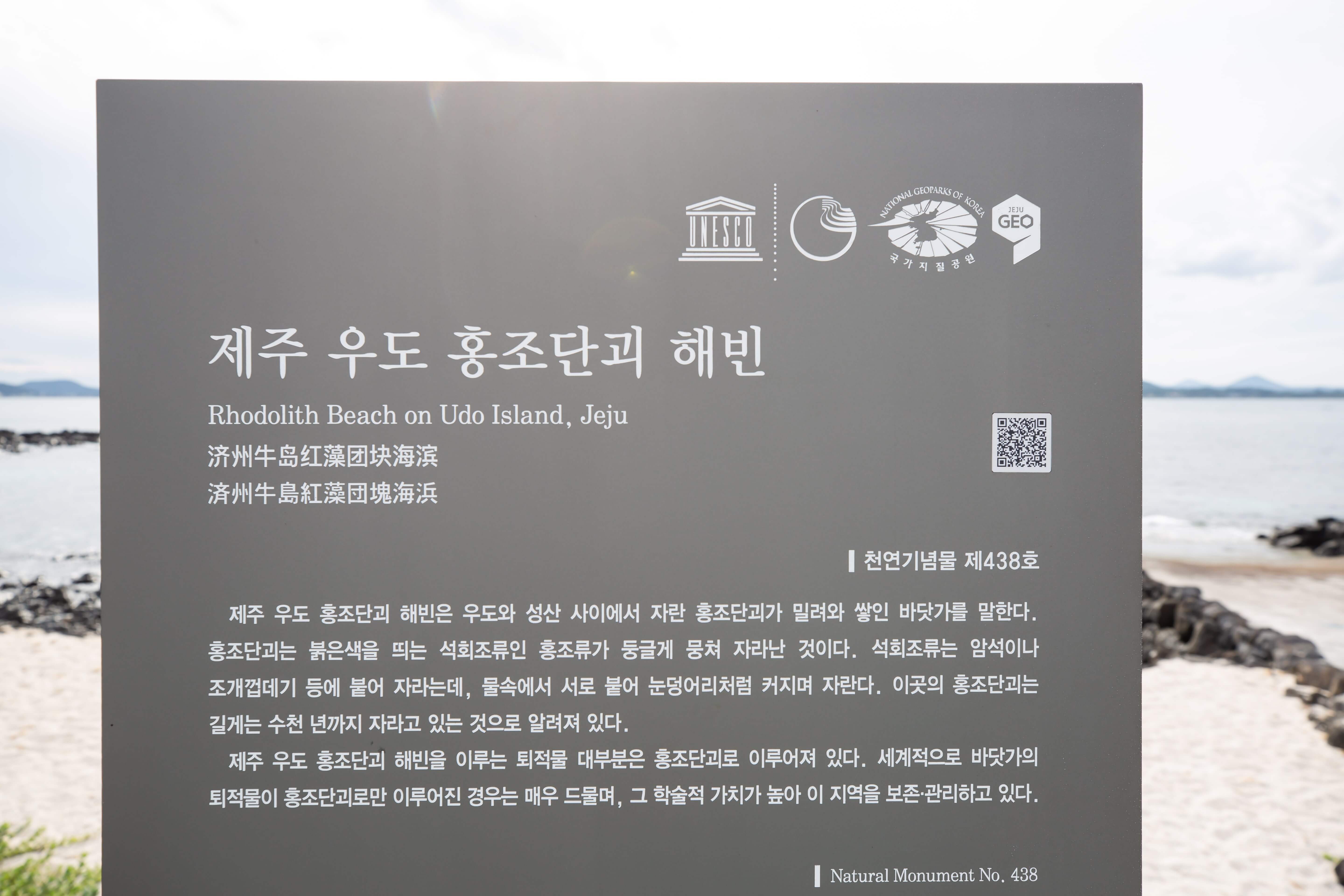 우도는 제주도 동쪽 끝에 위치한 섬입니다. 성산일출봉과 마주보고 있으며, 최근들어 유명해진 곳이기도 해요. 우도는 소가 누워있는 모습이라 하여 붙여진 이름이며, 실제로 배를 타고 들어가면 사람들이 누워있는 모양처럼 보이기도 합니다. 이렇게 아름다운 풍경을 가진 우도에서도 특히나 인기 많은 해변이 있으니, 바로 홍조단괴해빈이라는 해수욕장입니다.특히 이 곳에서는 현무암질 용암류인 조면안산암으로 이루어진 해안절벽 위에 퇴적되어 만들어진 해빈(바닷가) 중 국내 최대 규모를 자랑합니다